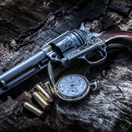 An ancient revolver that Bandit uses occasionally when he does mercenary jobs outside bar work. Named "The Duke", the revolver was once use by a known rogue cowboy named Douglas "The Duke" Cassidy, before he died during a showdown with the sheriff in town. This revolver doesn't run out of bullets when in use. The revolver doesn't ran out of bullets and can fire quickdraw shots at a speed of sound.