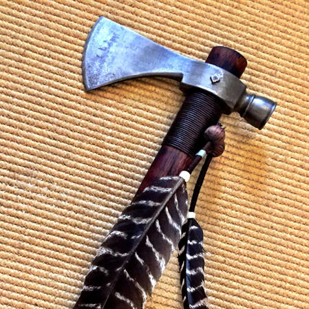 A Tomahawk Axe of Native American descent, which is made from the fangs of the "Skinwalker(Yee Naaldlooshii)" named Selene Cochise, who cause havoc in a village for revenge of her tribe's death at the hands of a gang of rogue cowboys in 1769. Selene was eventually executed after the townspeople captured her and a white blacksmith uses her fangs to forge the blade of this axe, and the wood handle was made from a sacred indian oak. The soul of Selene was eventually reside within the weapon thanks to a forbidden ritual performed by a Navajo Shaman.