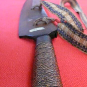 The "Headhunter" is a Indigenous Curved Sword of Seediq(Indigenous Taiwanese People) origin that was once owned by a known Seediq Savage Tribesman, whose name is unknown. The Seediq Savage who use this Curved Sword is known for decapitating the heads of his enemies, earning him the moniker "Headhunter".During the Musha Incident of 1930(A.K.A. "The Wushe Rebellion"), the Tribesman manage to kill about 34 Colonial Japanese Soldiers, but this unnamed Tribesman met his end after 6 Colonial Japanese Soldiers shoot him down with about 7 bullets after trying to let his fellow tribesmen cross the bridge. His body eventually falls off the bridge and through the river waters of the forest. The Tribesman's spirit was suppose to cross the rainbow bridge to meet with his ancestors' souls to receive eternal life as a "Seediq Bale(Real Seediq)", but unfortunately his spirit was trapped in this very curved sword since.